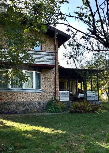 О доме: 220/170/12 м2, кол-во этажей - 2, материал - кирпич, новый дом, участок 100 соток, сад, рядом лес, выход к воде, газ, свет, водопровод, отопление, канализация; хорошее состояние, высота потолков 3м, комнаты раздельные, с/у совмещенный, на полу ламинат, телефон, интернет, холодильник, мебель, кухонная мебель