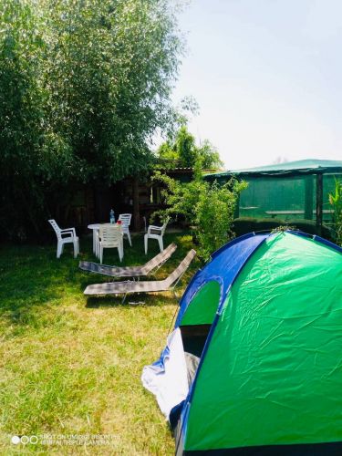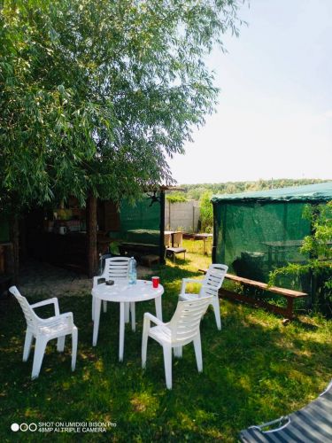 Закрита територія, туалет, вода, беседка, навес від сонця, кострова зона,мангал, дитячі гойдалки , спуск для човна, рибалка, пляжні лежанки, піщаний берег, стояка для автомобіля, від вашої палатки до берега аж 8 кроків. Територія 20 соток .