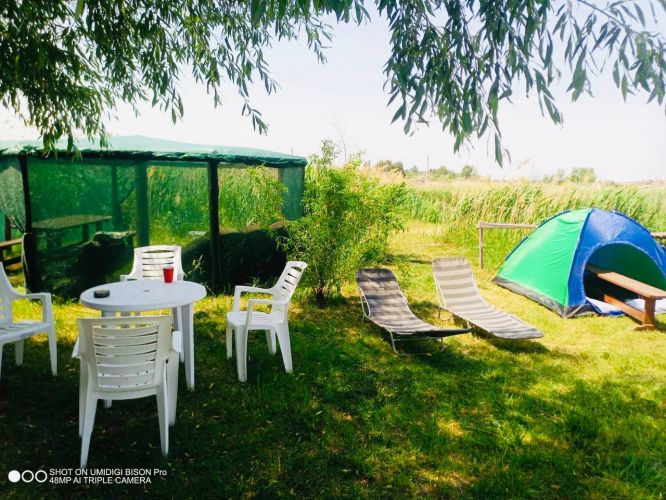 Закрита територія, туалет, вода, беседка, навес від сонця, кострова зона,мангал, дитячі гойдалки , спуск для човна, рибалка, пляжні лежанки, піщаний берег, стояка для автомобіля, від вашої палатки до берега аж 8 кроків. Територія 20 соток .