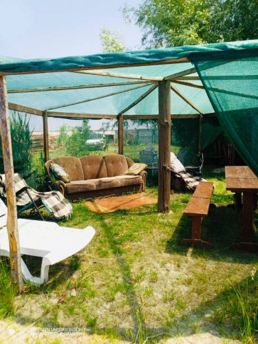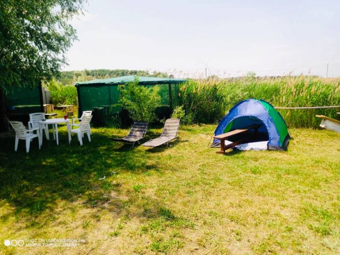Закрита територія, туалет, вода, беседка, навес від сонця, кострова зона,мангал, дитячі гойдалки , спуск для човна, рибалка, пляжні лежанки, піщаний берег, стояка для автомобіля, від вашої палатки до берега аж 8 кроків. Територія 20 соток .