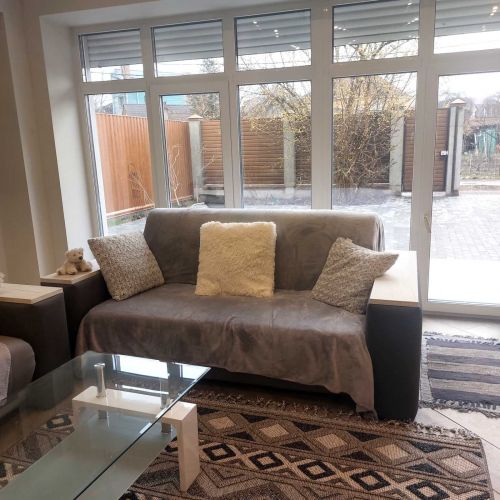 Пропонується в оренду шикарний сучасний житловий будинок 2020р побудови на Стеценка( Святошинський р-н), 4 лінія, модне одноповерхове бунгало, будинок 170м, 4 кімнати, три спальні з ліжками, великі вбудовані шафи, 2 с/вузла( гідробокс з парілкою). Новинка у плануванні: з кожної кімнати - окремий вихід у двір. Вся бітова техніка: очищення води, генератор, кінопроектор, дрібні ел. прилади. Паркомісця на 2-3 машини, зона барбекю. Меблі, техніка - все дороге сучасне, є кондиціювання, посудомийна машина, пральна та сушильна машини. Заходь та живи! Автоматичні ворота, ролети в будинку, зона для барбеку, все оснащення нове. Три паркування відкриті. Майже все, що душа забажає у цьому чудовому будинку, є 1200у.о.