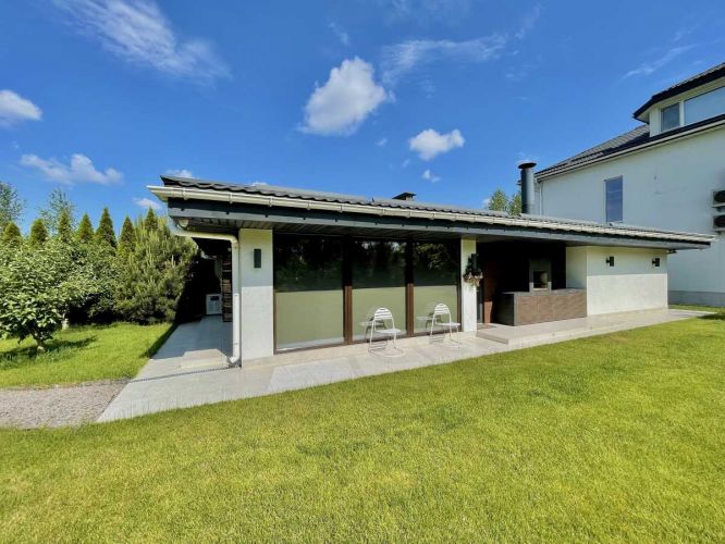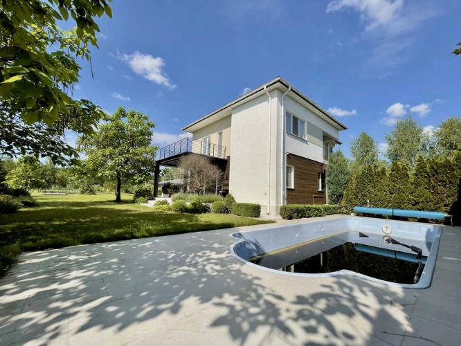 Аренда, современного дома 250 кв.м., гараж на 2 авто + 2 авто внутри двора, участок 50 соток в собственности ( озеленённый участок с озерцом, зоной BBQ, и открытым бассейном с подогревом и противотоком ), скважина 45 метров.