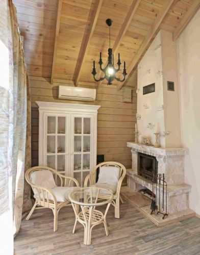 Оренда романтичного будиночка з бруса під Киеєвом в комплексі Пастораль. Уютна атмосфера, меблі з натурального дерева прованс, камін. Санвузел з душевой кабіной. Чайник, холодильник, необхідний посуд. Великолепныйарний краєвид на озеро. Є кондиционер, т2, Wi-fi. На террасі можна провести гарний вечір. Без комиссии.