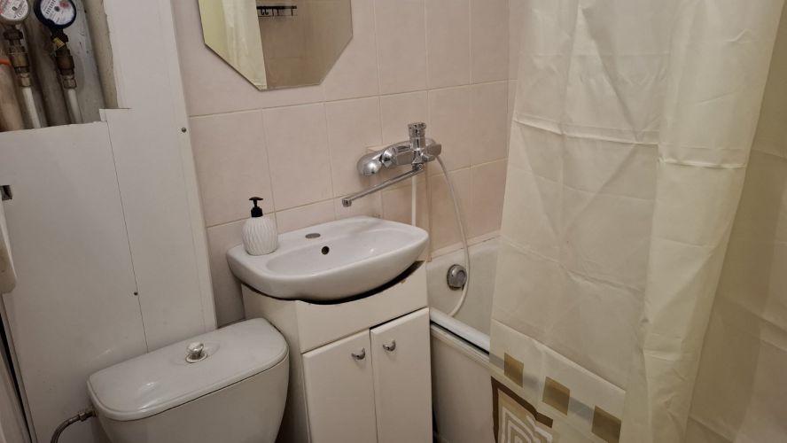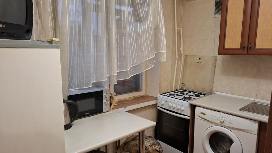 О квартире: 37/19/6.5м2, евроремонт, высота потолков 2.6м, комнаты раздельные, с/у совмещенный, на полу ковролин, лоджия, окна во двор, интернет, TV, СМА, холодильник, мебель, кухонная мебель