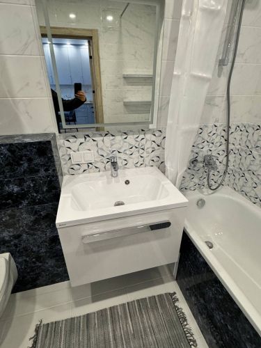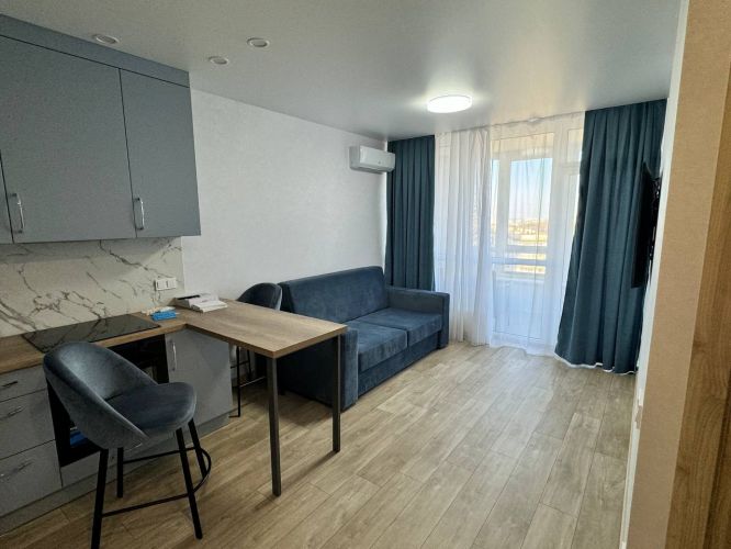 О квартире: 45/16/16м2, дизайнерский ремонт, высота потолков 2.7м, с/у совмещенный, на полу ламинат, лоджия, окна во двор, холодильник, мебель, кухонная мебель