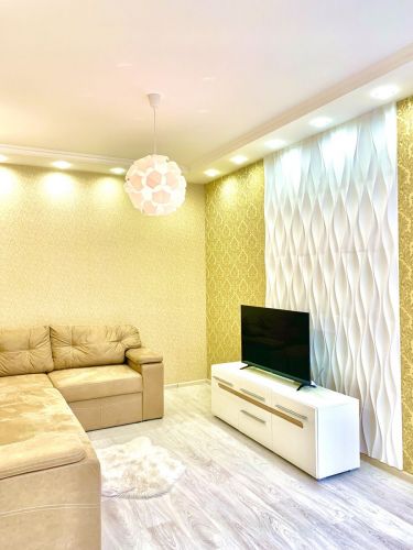 О квартире: 85/50/13м2, евроремонт, высота потолков 3.0м, комнаты смежно-раздельные, с/у совмещенный, на полу ламинат, окна во двор, интернет, TV, СМА