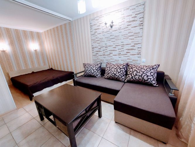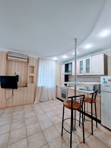 О квартире: 45/25/10м2, евроремонт, комнаты смежные, с/у совмещенный, на полу кафель, балкон, окна на улицу, интернет, TV, СМА, холодильник, мебель, кухонная мебель