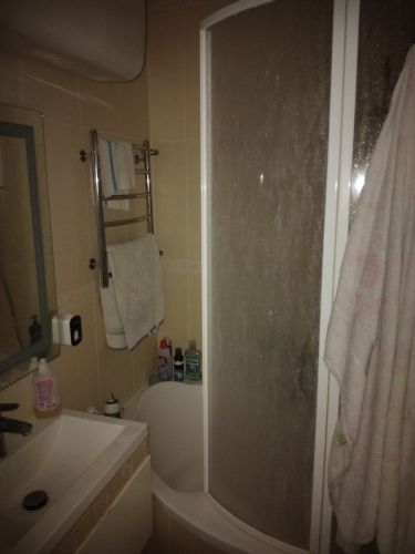 О квартире: 35/18/9м2, евроремонт, высота потолков 2.8м, комнаты смежные, с/у совмещенный, на полу ламинат, окна во двор, холодильник, мебель, кухонная мебель