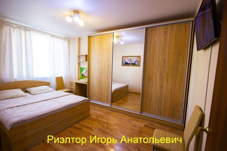 - Встроенная кухня, обеденный стол, стулья, 2 больших зеркальных шкафа-купе, двуспальная кровать, письменный стол.