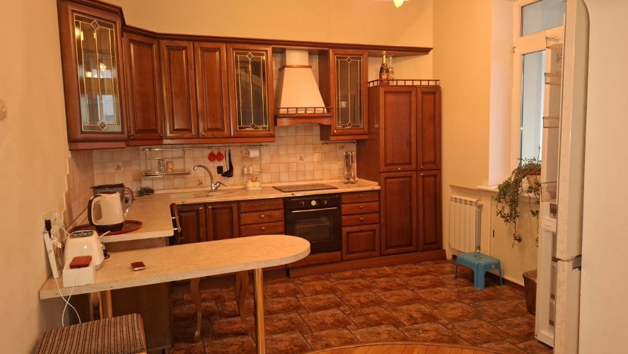 О квартире: 134/95/26м2, евроремонт, высота потолков 3.1м, комнаты раздельные, 2 с/у, на полу ламинат, лоджия, окна во двор, интернет, TV, СМА, холодильник, мебель, кухонная мебель