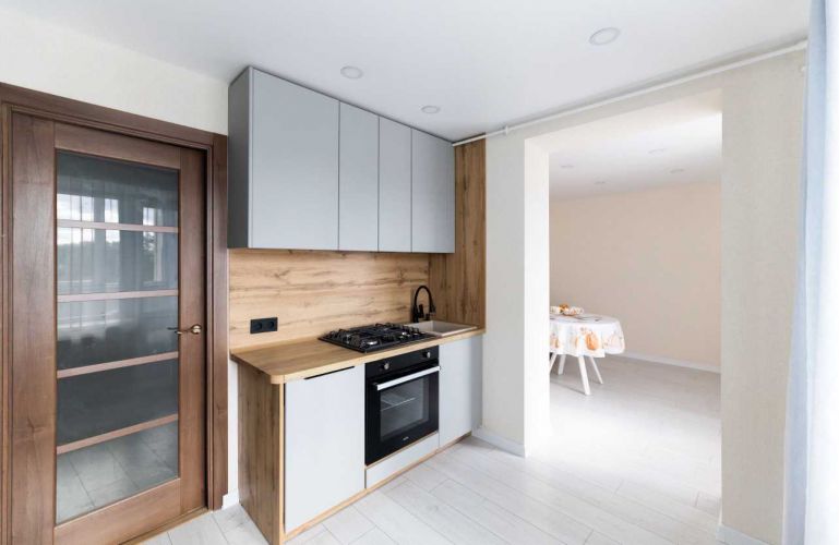 Кухня повністю нова: фасади з МДФ, холодильник, посудомийна машина та сучасні меблі. За домовленістю можна залишити або додати додаткову техніку й меблі.