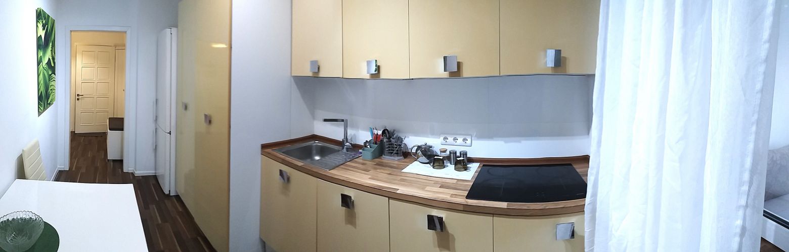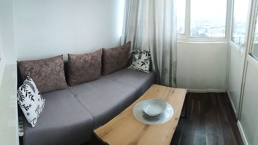О квартире: 43/20/14м2, евроремонт, высота потолков 3м, комнаты раздельные, с/у совмещенный, на полу ламинат, балкон и лоджия, окна во двор, свободная планировка, интернет, TV, СМА, холодильник, мебель, кухонная мебель