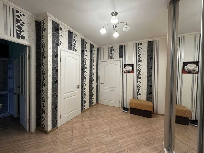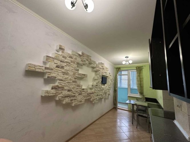 Простора кухня з усіма необхідною вбудованою технікою (варильна поверхня, духова шафа, великий холодильник, мікрохвильова пічь ), в кімнаті : зручний ортопедичний розкладний диван з повноцінним 2-сп місцем, плазма, робочий камін для затишку, кондиціонер, санвузол з великою кутовою ванною, пральна машина-автомат Bosh, є бойлер. У холі - шафа-купе, великий балкон. Квартира чиста і готова до заселення. Фото відповідає квартирі .
