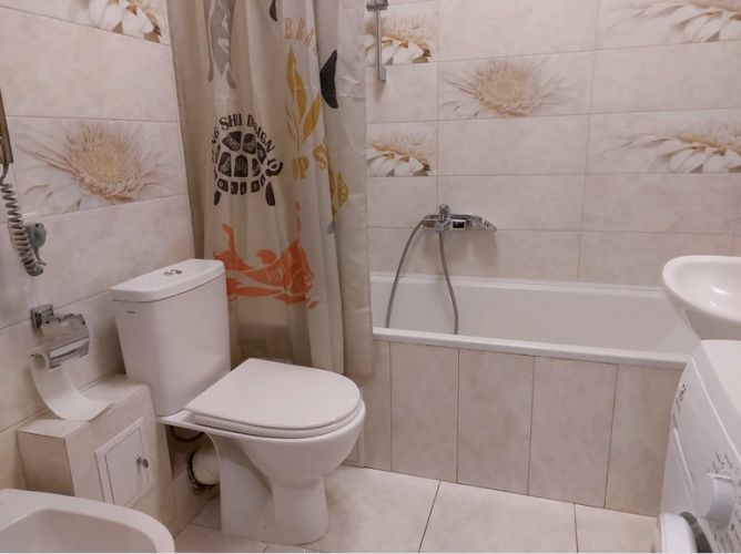 О квартире: 58/35/18м2, дизайнерский ремонт, высота потолков 3м, комнаты раздельные, с/у совмещенный, на полу ламинат, лоджия, свободная планировка, интернет, TV, СМА, холодильник, мебель, кухонная мебель