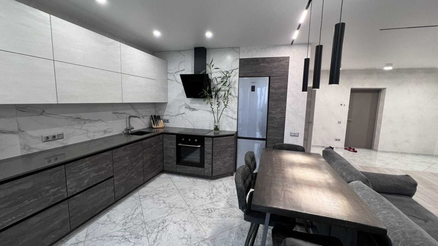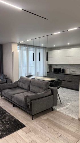 Інтер’єр квартири виконаний у сучасному стилі. В ремонті та оздобленні використовувались виключно якісні матеріали. Крім цього, квартира оснащена всім необхідним: стильні меблі, побутова техніка, бойлер, система кондиціювання та тепла підлога. Також по всій квартирі розведена система очистки води.