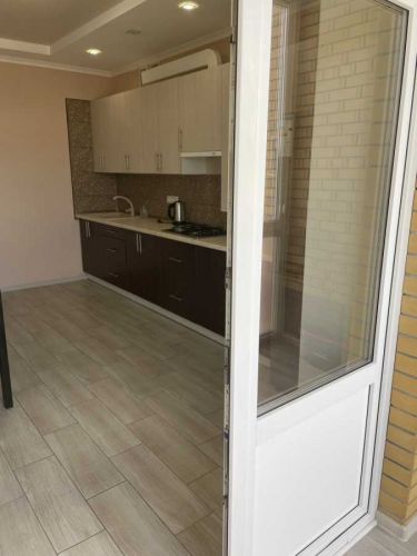 кімната з кондиціонером , коридор з гардеробною, санвузол з ванною, кухня з лоджією.