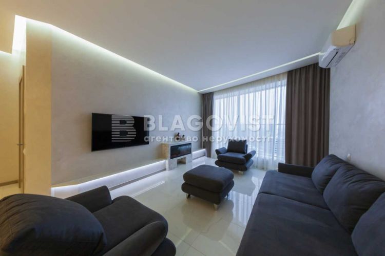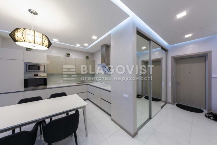 Кухня-вітальня. Спальня. Простора гардеробна кімната. Великий санвузол з душовою та ванною. Тераса з панорамним видом на Київ. Висота стель: 3.0 м.