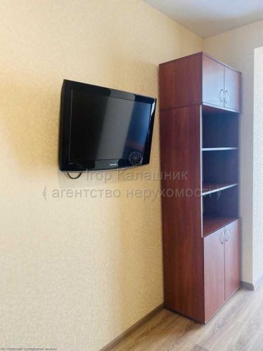 * У кімнаті: вмістка шафа-купе, 2-місний розкладний диван, письмовий стіл, стілець, шафа з полицями, плазмовий телевізор.