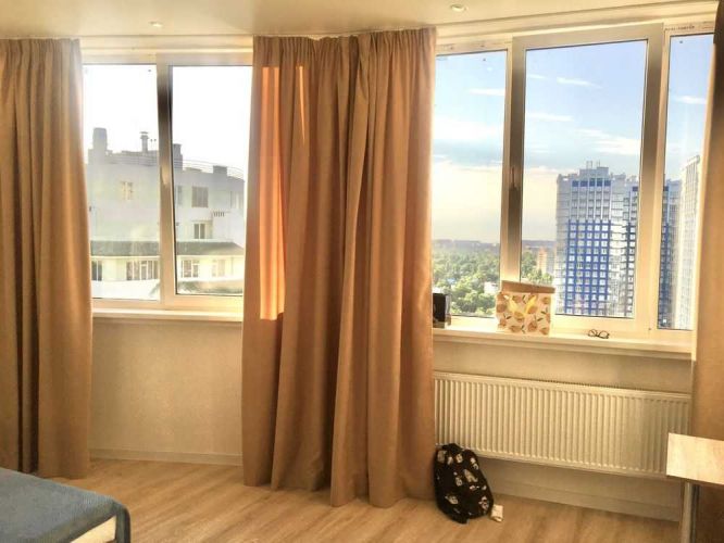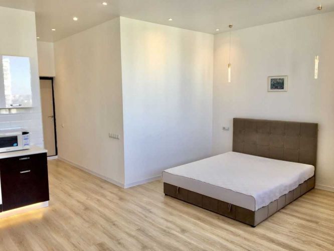 Сдам 1-комнатную студию на 2-й ст.Люстдорфской дороги/ ЖК" Одиссей", 17/18, 33м общая, современный ремонт, 2-х спальная кровать, шкаф-купе, душ, бойлер, кондиционер, интернет. Автономия, охрана, видеонаблюдение. Без детей. За животное доплата.