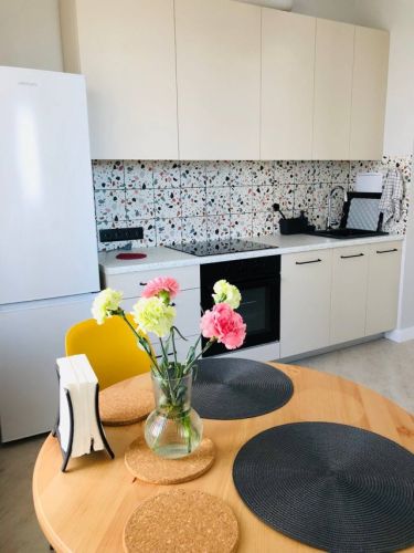 О квартире: 42/21/12м2, евроремонт, с/у раздельный, на полу кафель, балкон