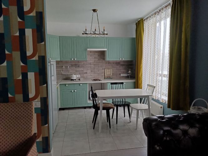 Загальна площа 62 кв.м., складається з кухні вітальні та двох окремих кімнат. Меблі та необхідну побутову техніку завезуть під замовлення. Вбудовна кухня, два холодильника.