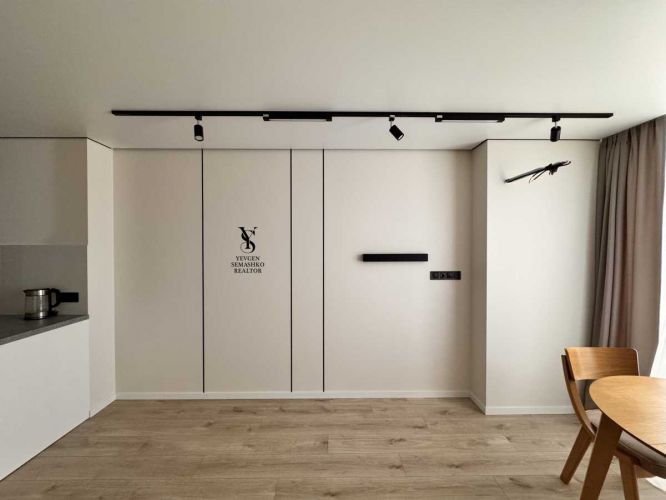 Загальна площа квартири: 49.5 м2, кухня-вітальня: 22,8 м2, спальня: 15.2 м2, Санвузол 4,5 м2.