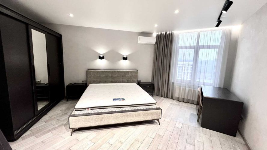 Інтер’єр квартири виконаний у сучасному стилі. В ремонті та оздобленні використовувались виключно якісні матеріали. Крім цього, квартира оснащена всім необхідним: стильні меблі, побутова техніка, бойлер, кондицыонери та тепла підлога. Також по всій квартирі розведена система очистки води.