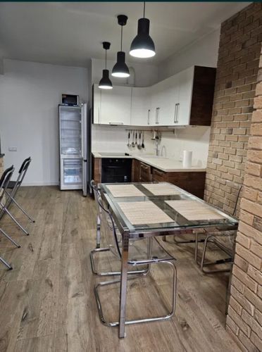 О квартире: 52/22/28м2, дизайнерский ремонт, высота потолков 3м, комнаты смежно-раздельные, с/у совмещенный, на полу ламинат, лоджия, интернет, TV, СМА, холодильник, мебель, кухонная мебель
