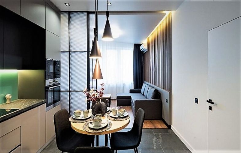 О квартире: 62/38/17м2, дизайнерский ремонт, высота потолков 3м, комнаты смежно-раздельные, с/у совмещенный, на полу паркет, балкон, TV, СМА, холодильник, мебель, кухонная мебель