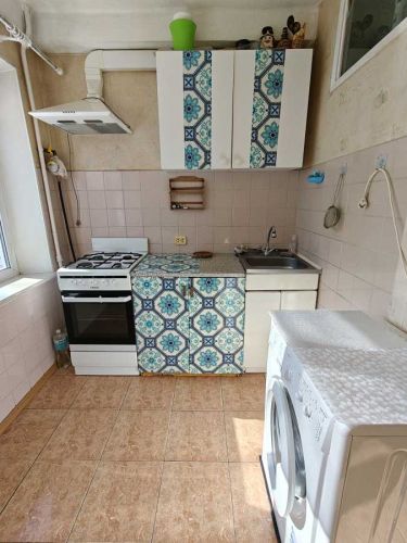 Кухня гарнитурна, обідній стіл, в кімнаті: двоспальний диван, комод, крісло, шафа. Облаштована передпокій(вбудована шафа-купе). В квартирі є вся потрібна техніка.