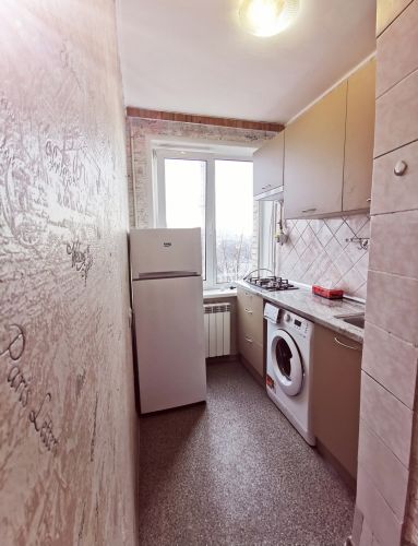 Мостмцька, 6, затишна, маленька квартира площею 22 кв.м. Відмінна інфраструктура. В квартирі нова побутова техніка та меблі. . Газова поверхня " Heinner", витяжка . Кондиціонер "Cooper Hunter", холодильник "Beko", пральна машина "Indesit" , бойлер . Нова кухня, нова побутова техніка, новий диван та велика нова шафа. Євровікна, поміняні радіатори. Є лічильника на газ, воду, електроенергію.