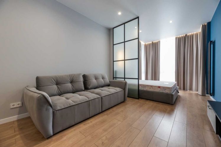 53/22/12, зручне планування кухня-їдальня з виходом на просторий балкон, затишна спальня з повноцінним ліжком і ортопедичним матрацом, вітальня з диваном, що розкладається, місткі шафи для речей і санвузол;