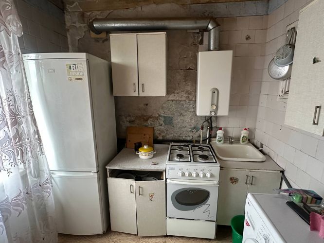Квартира в жилому стані, площа 45 м2, поверх 5/5. Кімнати роздільні, балкон не засклений, колонка на гарячу воду, дивани розкладні, лічильники на світло, газ, воду.