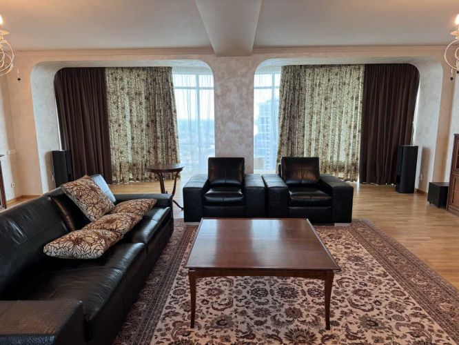 Квартира площею 288 кв.м. включає в себе 4 кімнати (спальня, кабінет, вітальня і гостьова спальня), кухню-їдальню, 2 санвузли. Високоякісний ремонт в класичному стилі з використанням сучасних технологій і екологічно чистих матеріалів поєднує бездоганний смак і функціональність. Оздоблення квартири проводилася "для себе", під повним контролем власника, що дозволяє гарантувати високу якість ремонтних робіт. Дуже зручне і грамотне планування. Ексклюзивні стильні меблі кращих італійських виробників підкреслюють атмосферу розкоші і комфорту. Апартаменти укомплектовані всією необхідною побутовою технікою, кондиціонерами, повністю обладнана кухня з вбудованою побутовою технікою: варильна поверхня, духова шафа, холодильник, посудомийна машина. Квартира повністю готова до заселення. Додаткову безпеку забезпечують системи сигналізації та відеоспостереження. Панорамні вікна і високий поверх забезпечують карколомний вид на місто.