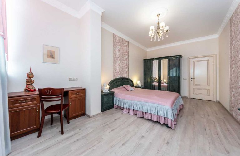 Загальна площа 112 метрів. 2 спальні ( у кожній двоспальне ліжко) + дитяча кімната + простора кухня-їдальня, великий хол, 2 санвузли, 2 балкони, пральна-комора.