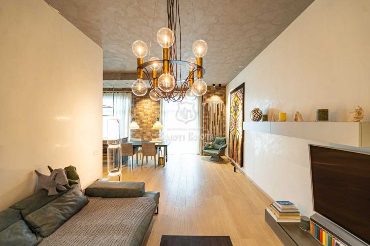 В квартирі виконано дорогий дизайнерський ремонт з використанням виключно натуральних матеріалів. Інтерєр прикрашає цикльований дубовий паркет, венеціанська штукатурка та іспанська плитка. Кухня від легендарного бренду Scavolini повністю укомплектована вбудованою кавоваркою, пароваркою та винною шафою. Меблювання та освітлення представлені провідними італійськими брендами, зокрема спальні гарнітури Paola Lenti з преміальними матрацами (40 см). Технічне оснащення включає центральне кондиціонування та багаторівневу систему очищення води.