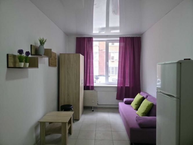 Квартира Студія. Простора світла кімната 19кв.м. Стелі 3м. В якій є пральна машина, плита, холодильник, кухонні меблі, розкладний диван, шафа, стіл, тумби. Свіжий ремонт. Є все, що потрібне для комфортного проживання.