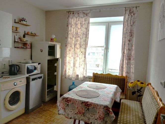 О квартире: 46/14/11м2, хорошее состояние, высота потолков 2.8м, комнаты раздельные, с/у раздельный, на полу ламинат, балкон, окна во двор, интернет, TV, СМА, холодильник, мебель, кухонная мебель