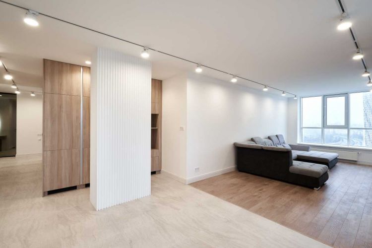 простора кухня-вітальня з панорамними вікнами