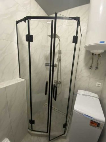 Квартира на 3 поверсі (12-поверхового будинку). Загальна площа= 37 м2, кухня-студія= 23 м2 (двоспальне ліжко, ховається за рухомою, скляною системою).