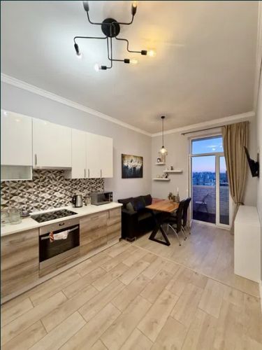 О квартире: 45/22/16м2, дизайнерский ремонт, высота потолков 3м, комнаты раздельные, с/у совмещенный, на полу ламинат, балкон, окна во двор, интернет, TV, СМА, холодильник, мебель, кухонная мебель