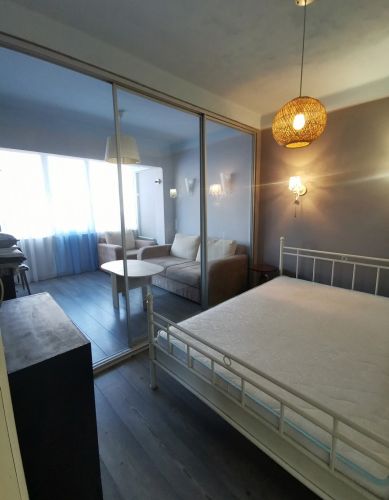 О квартире: 33/20/8м2, евроремонт, с/у совмещенный, на полу ламинат, балкон, окна на улицу, интернет, СМА, холодильник, мебель, кухонная мебель
