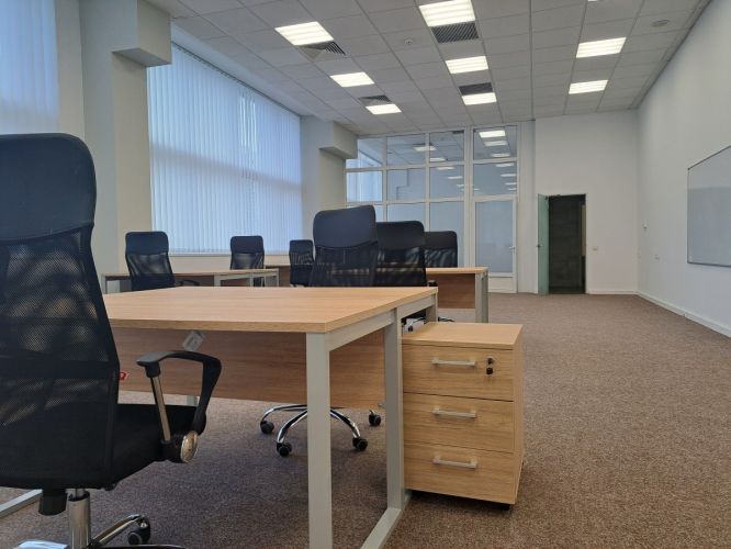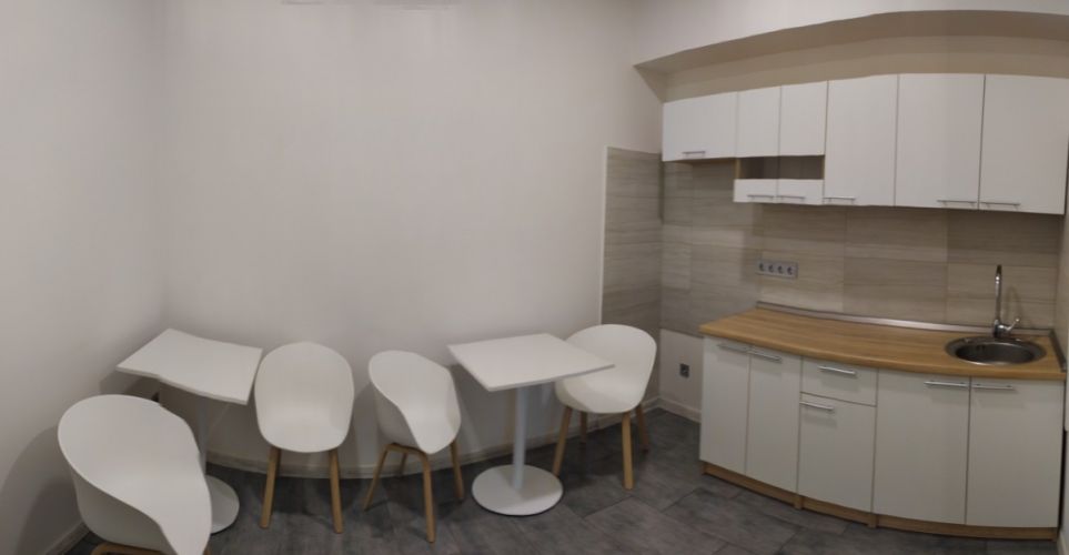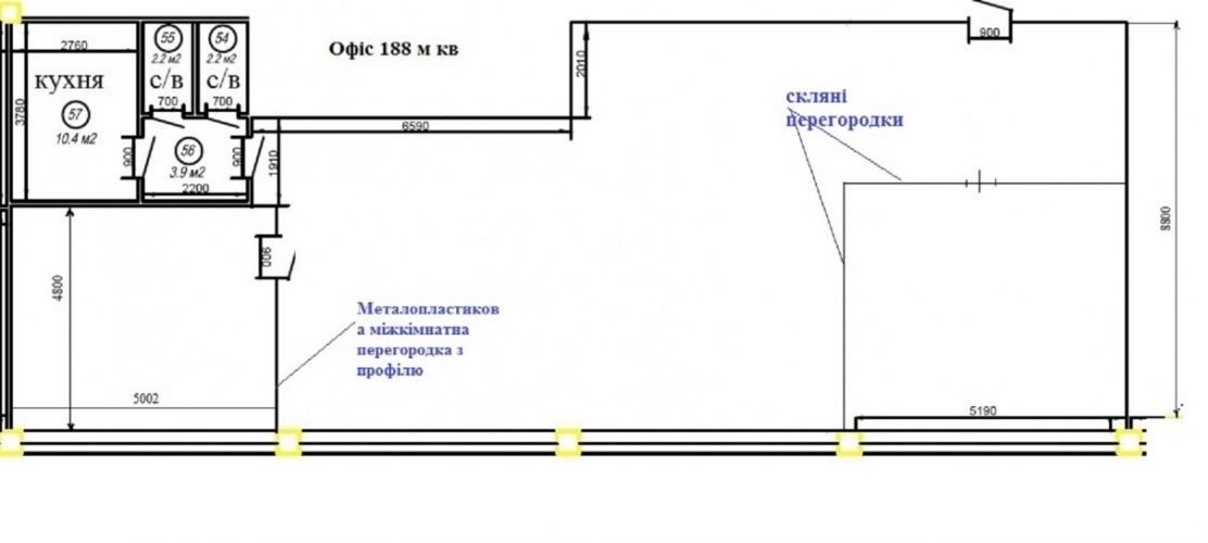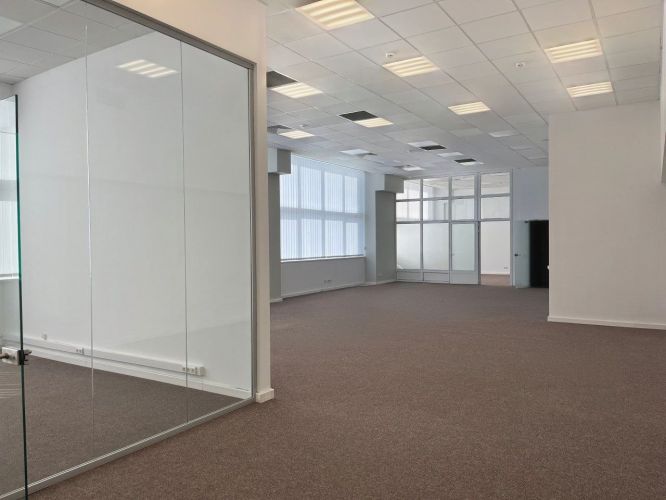 Планування - відкрите, 2 кабінети, санвузли, кухня. Перегородки виконани з алюмінієвого профілю системи "Комплекс". Висота стелі 3, 5 м.
