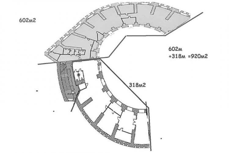 В приміщенні опенспейс, кімнати, 2 кухні, 2 блоки с/в.