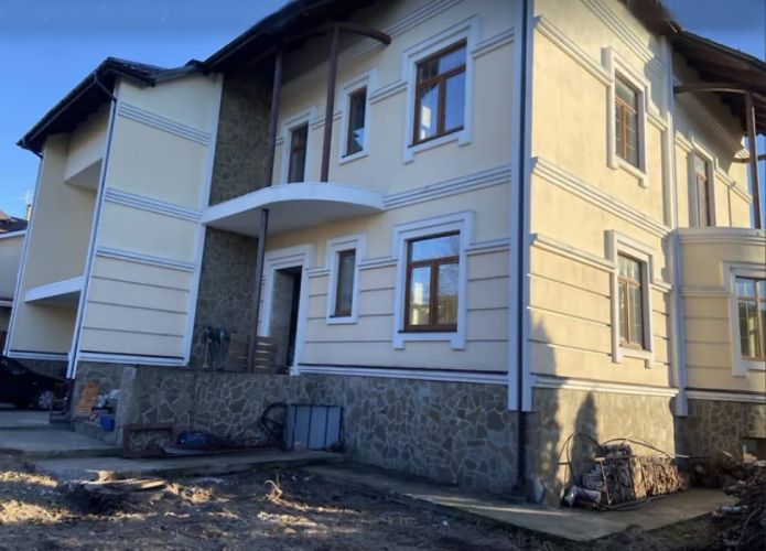 В будинку просторий хол, кухня, 5 кімнат, 3 с/в, балкон.