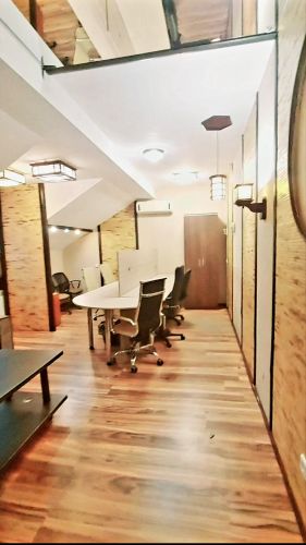 Меблі: 6 офісних столів, офісне крісло 2, 2 стільці, 2 дивани двоспальних розкладних, шафи вбудовані, двері-купе, полиці, стелажі, кухонний гарнітур.