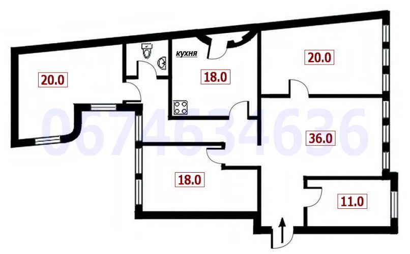 - холл, зал-рабочее пространство 36 м2, 4 кабинета (20 м2, 20 м2, 18 м2, 11 м2), оборудованная кухня 18 м2, санузел, высота потолка 3,6 м;
