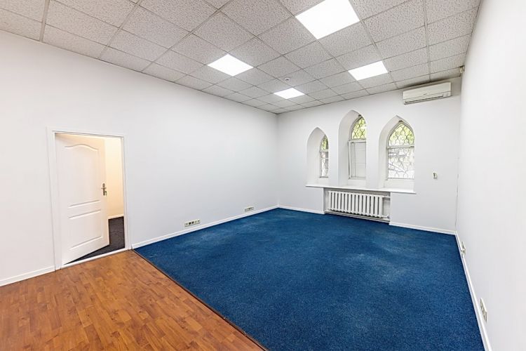 Помещение: 135м2, евроремонт, высота потолков 3.6м, на полу ковролин, интернет