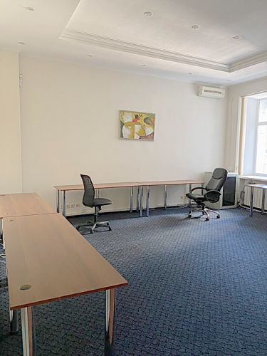 Помещение: 105м2, евроремонт, высота потолков 3.6м, на полу ковролин, интернет, мебель
