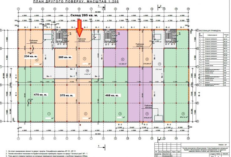 Висота стелі 2 поверху – 5,8 метрів. Корисне навантаження на підлогу - 3т/м 2 . Є два підйомника розмірами 4 на 2,5 метра. Можливість піднімати вантажі до 3 т.